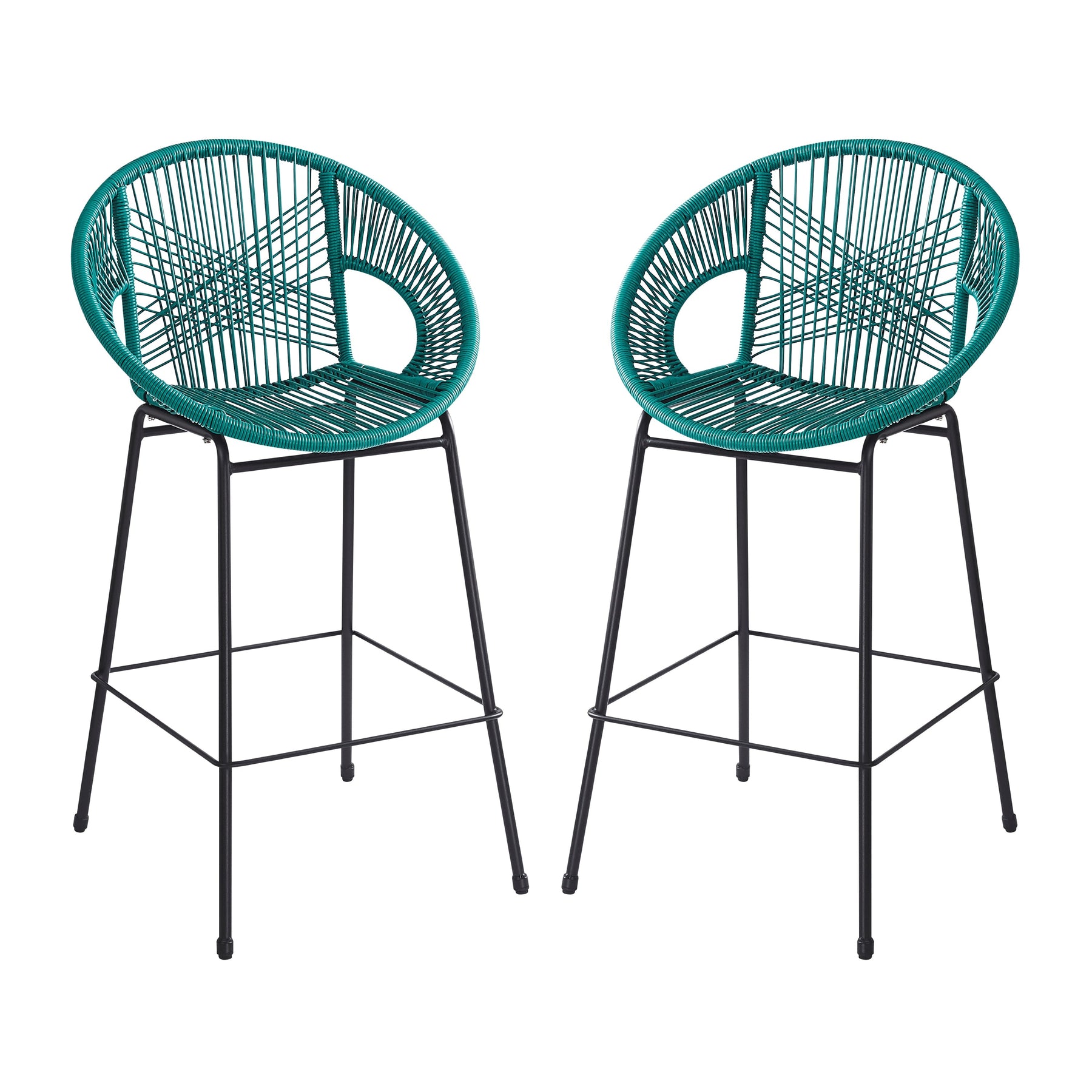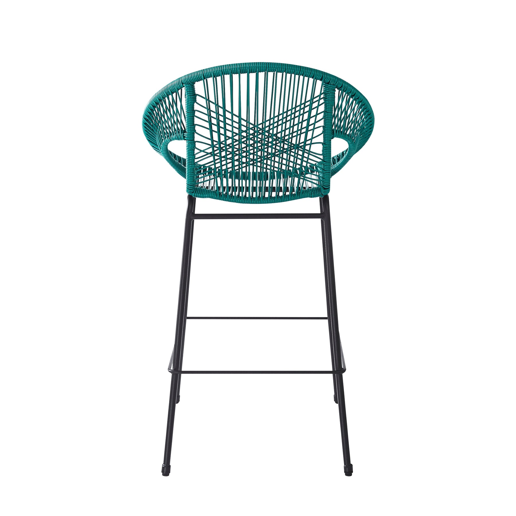 Ferrara Outdoor Patio Teal Faux Wicker Barstool Set, Durable PE Material, Ergonomic Design, Teal Wicker with Black Frame