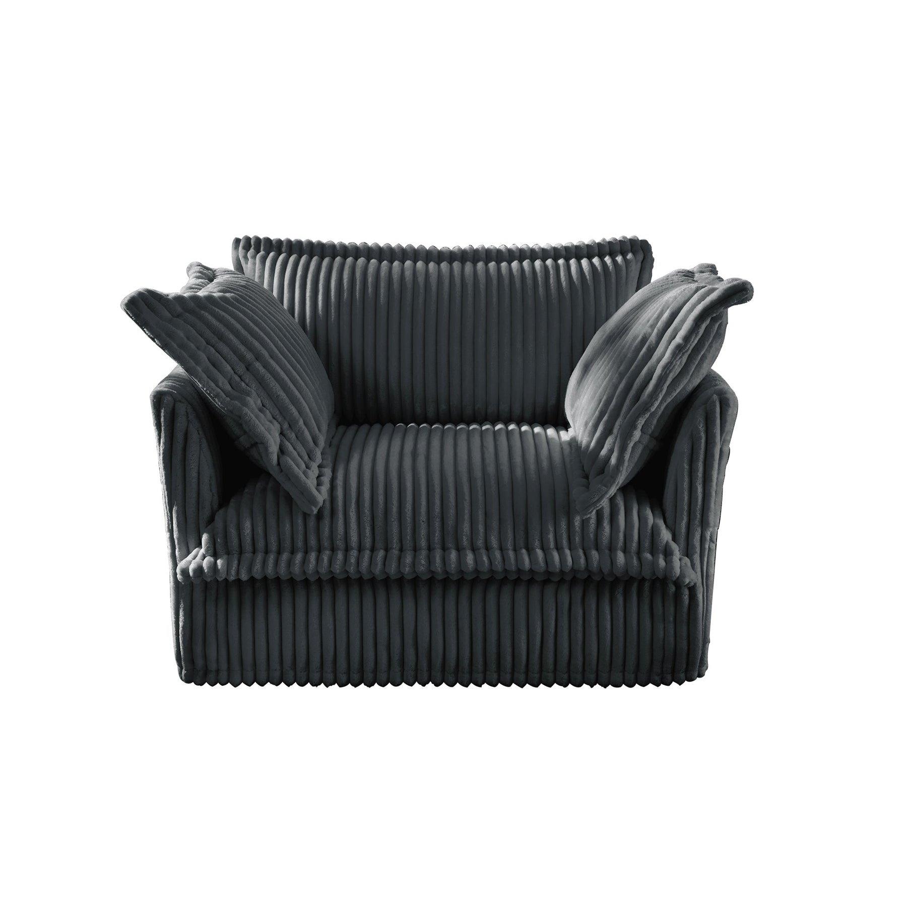 Slip-covered Armchair with 1 Big Back Cushion and 2 Big Toss Pillows, Single Deep Seat Comfy Single Couch Sofa Multiple Large Soft Pillows, Grey  Corduroy Fabric